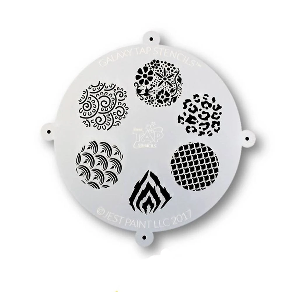 Galaxy TAP Stencils can be cleaned by wiping with a damp cloth, baby wipe or a paper towel. Always wipe and dry the back of your stencil between uses so that you have a clean surface before using it next time. Stencil tabs have holes on them, allowing them to easily stored on a key chain.