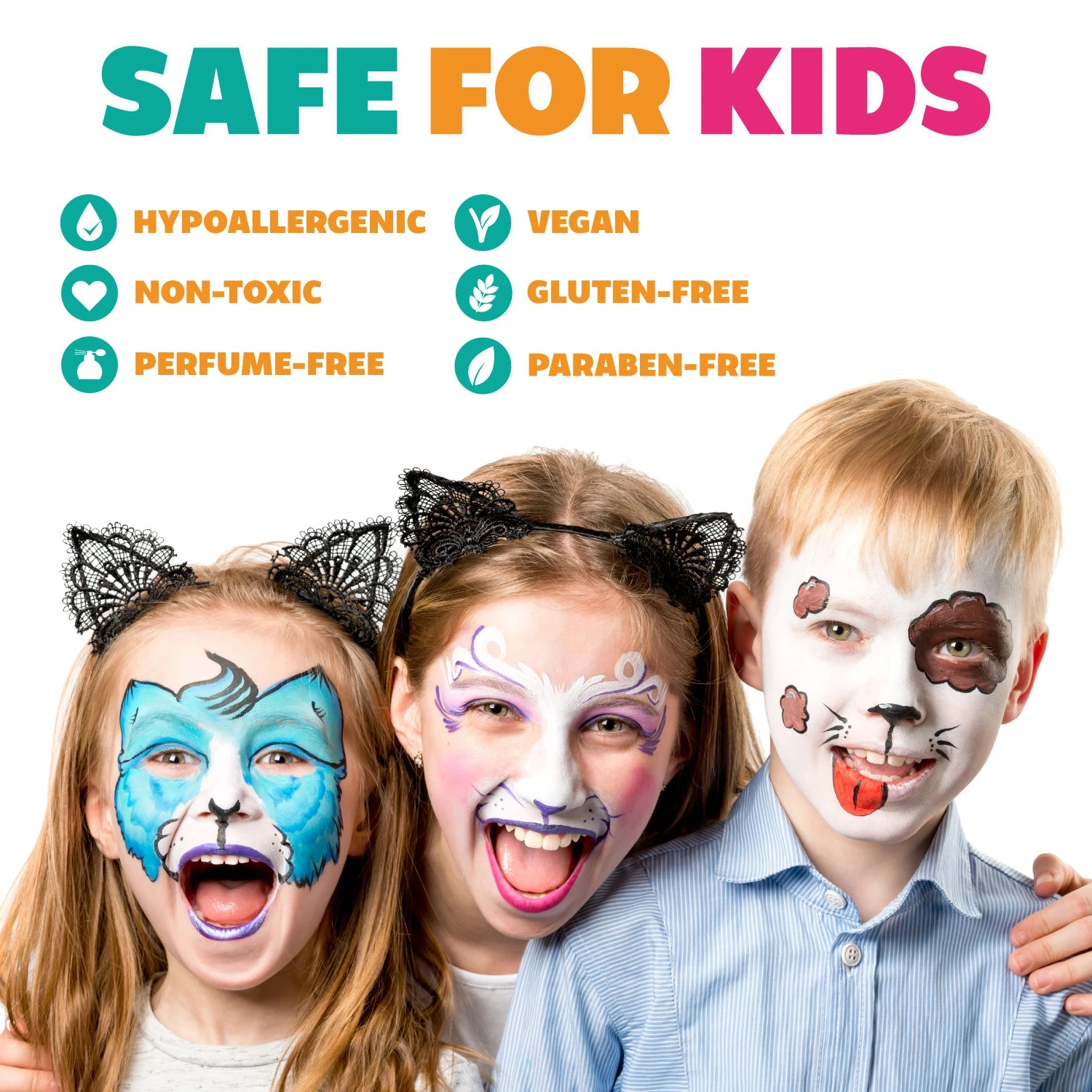 Kraze FX formula is non-toxic and hypoallergenic, safe to use on skin. Kraze Face Paint is manufactured using FDA compliant, cosmetic grade ingredients. Products are vegan and cruelty free, manufactured without any animal based ingredients and without any testing on animals.Â
