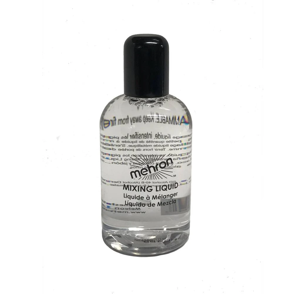 Mehron Mixing Liquid can also be mixed with Mehron Metallic Powder or Gem Powder to form a metallic liquid makeup perfect for body painting. Apply with a brush, sponge or airbrush. Dries completely and washes off easily with soap and water.