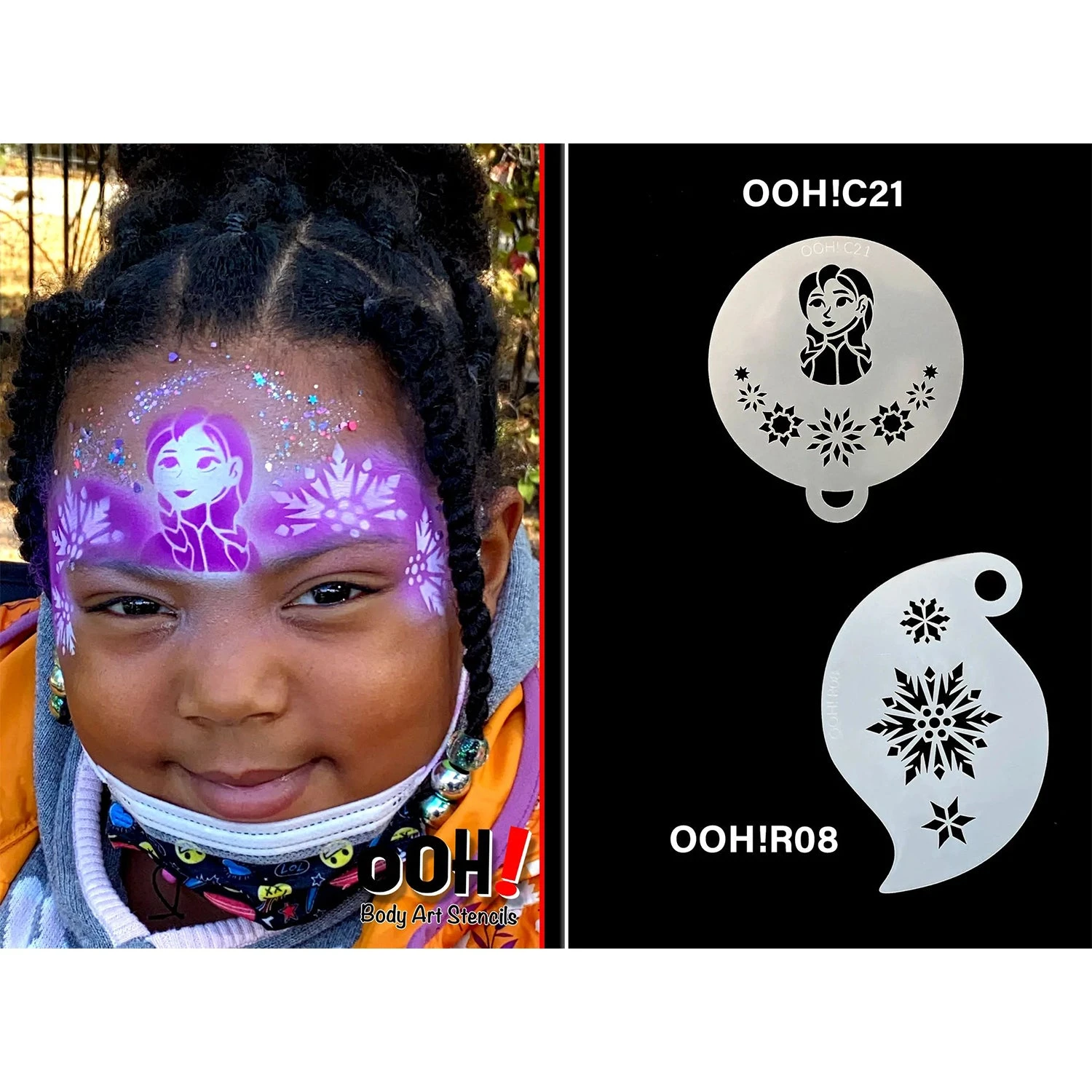 Made in the USA, using 7 mil solvent proof mylar, Ooh! Stencils are durable and are great to add fun designs on face or arms of adults and children alike. Ooh! Stencils are designed to work with face paints or airbrush and are easy to clean after use.