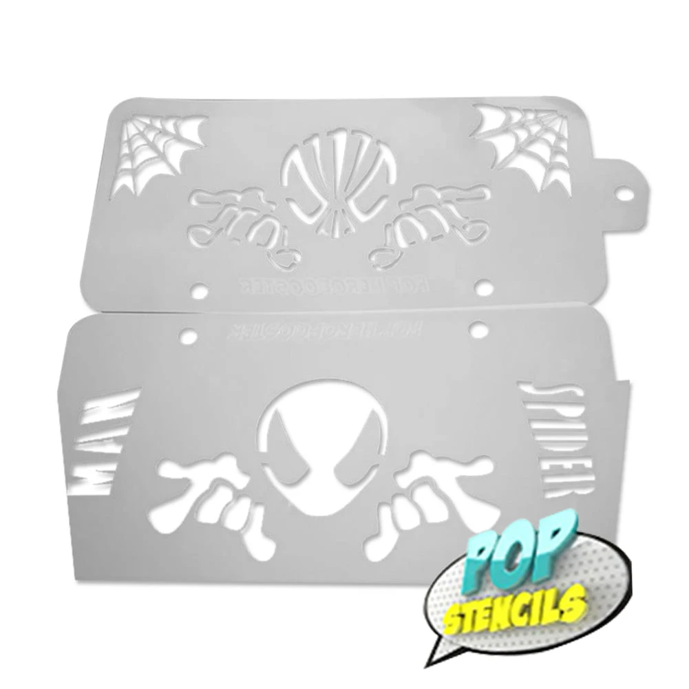 Pop Stencils can be used to paint over a face paint base or over bare skin. Hold the stencil firmly on skin and apply face paint either by using a sponge or airbrush. If you are using a sponge, make sure that it is slightly damp. Hold the stencil firmly against the skin and pat your sponge gently to evade paint from going under the stencil. Design elements can also be made by dabbing powder makeup over the stencil design. Mix and match elements in different stencils to create beautiful unique accents.