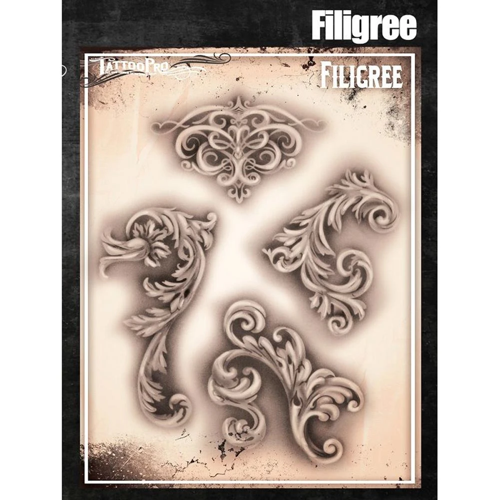 Tattoo Pro Stencils, designed by accomplished graffiti artist – Wiser Oner, are high quality, flexible, free hand airbrush tattoo stencils that take body art to the next level. Mix and match different designs from a wide range of Tattoo Pro Stencil sheets to create amazing designs anywhere on the body, covering small areas to full sleeves. Tattoo Pro Stencils are easy to use with basic airbrush skills, making it easy for even beginners to create realistic tattoos in minutes. These high quality stencils, made using 7.5 mil mylar are durable and reusable.
